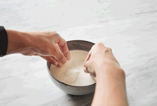 • If curds are tearing instead of stretching, they need to be melted more. Pour off some of the water in the bowl, and top up with more hot water from your kettle to soften the curds further.
